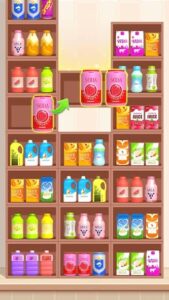 Entonces, cuando la reserva haya 3 objetos similares y del mismo color, desaparecerán de la estantería. En cada nivel, debes planear bien cada movimiento, ya que la mercancía variará de uno a otro, así como su ubicación en las estanterías. También, debes limpiar las estanterías y terminar diferentes tareas asignadas en el nivel, todo antes de que el tiempo acabe.